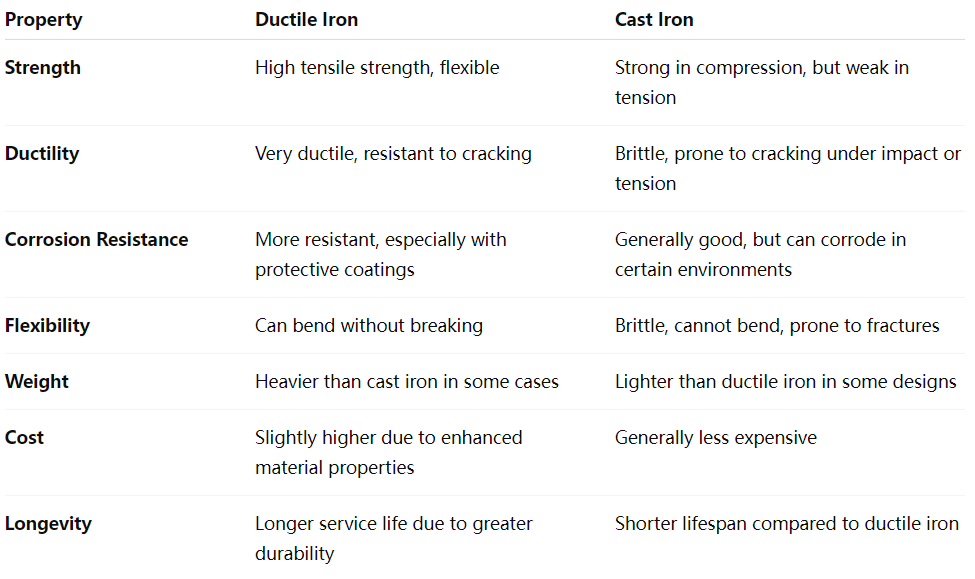 ダクタイル鋳鉄と鋳鉄にはそれぞれ用途がありますが、柔軟性、強度、耐久性が向上しているため、現代の用途では一般的にダクタイル鋳鉄が優れた選択肢となります。インフラストラクチャーの需要が進化し、システムの信頼性の向上と長寿命化が求められる中、ダクタイル鉄パイプは世界中で好まれ続けています。鋳鉄パイプは、特定の状況ではまだ機能的でコスト効率が高いものの、より先進的なパイプを優先して段階的に廃止されつつあります。