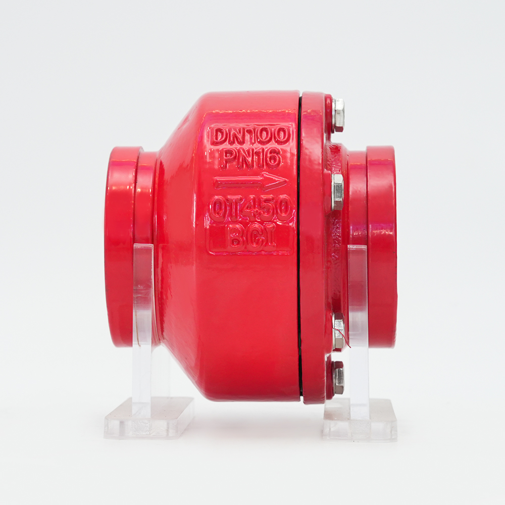 溝付消音逆止弁は給排水管路の防火管に適しています。バルブ本体はダクタイル鋳鉄製のため、製品の寿命が大幅に延長されます。この製品は、フランジサイレンサーチェックバルブのすべての利点を備えており、小型、軽量、取り付けが簡単、エンジニアリングコストが低いという特徴もあります。