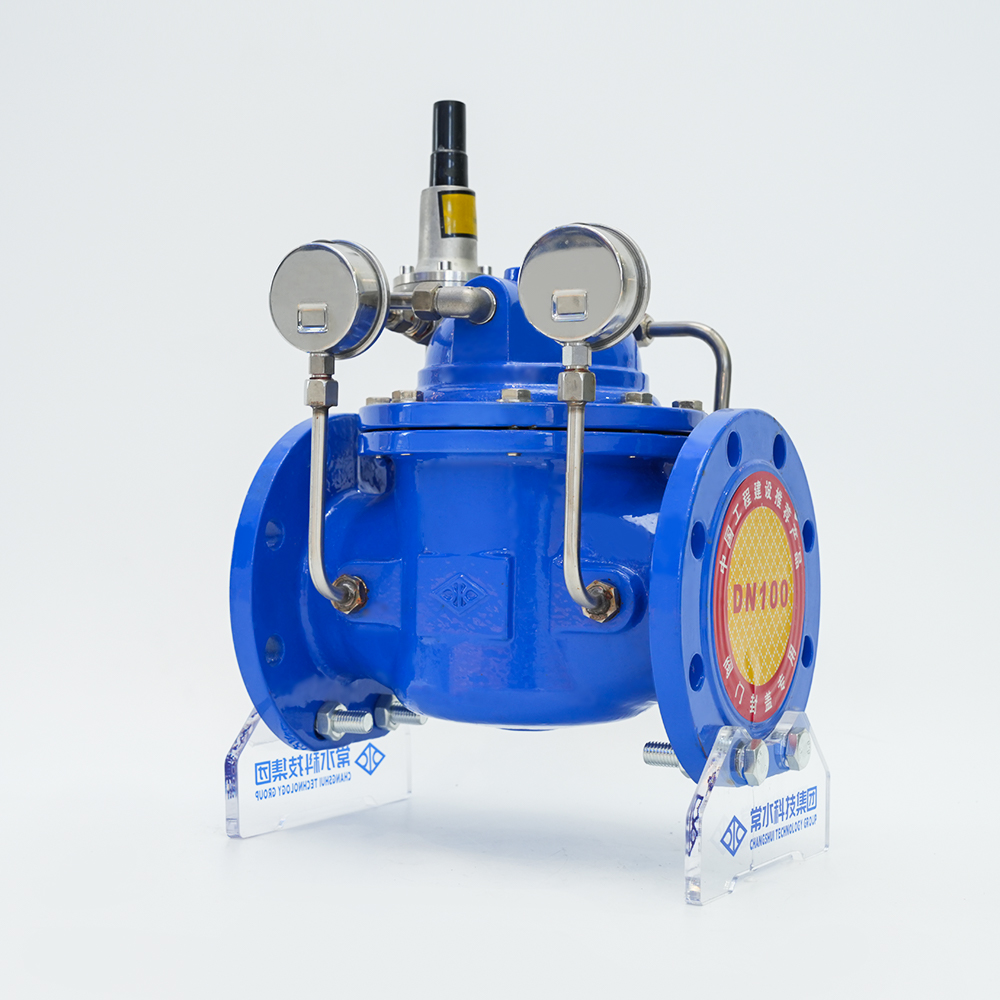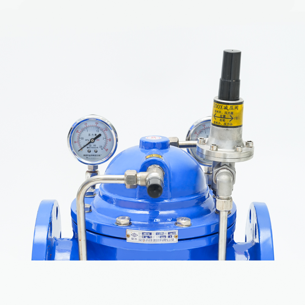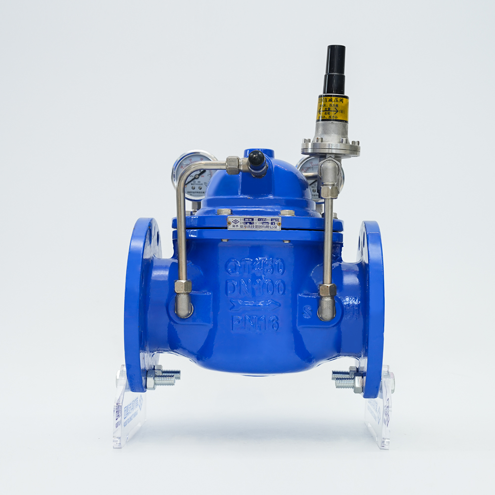 可変減圧弁はダイヤフラム式の油圧作動式で、給排水系統に設置され、主弁出口圧力を一定値に制御します。パイロット弁を調整することで入口圧力を必要な出口圧力まで下げることができ、出口圧力は媒体自体のエネルギーに依存して安定に保つことができ、入口圧力や出口流量の変化によって出口圧力が変化することはありません。バルブの前の圧力がバルブの後ろの設定圧力より低い場合、メインバルブは自動的にゆっくりと閉じます。