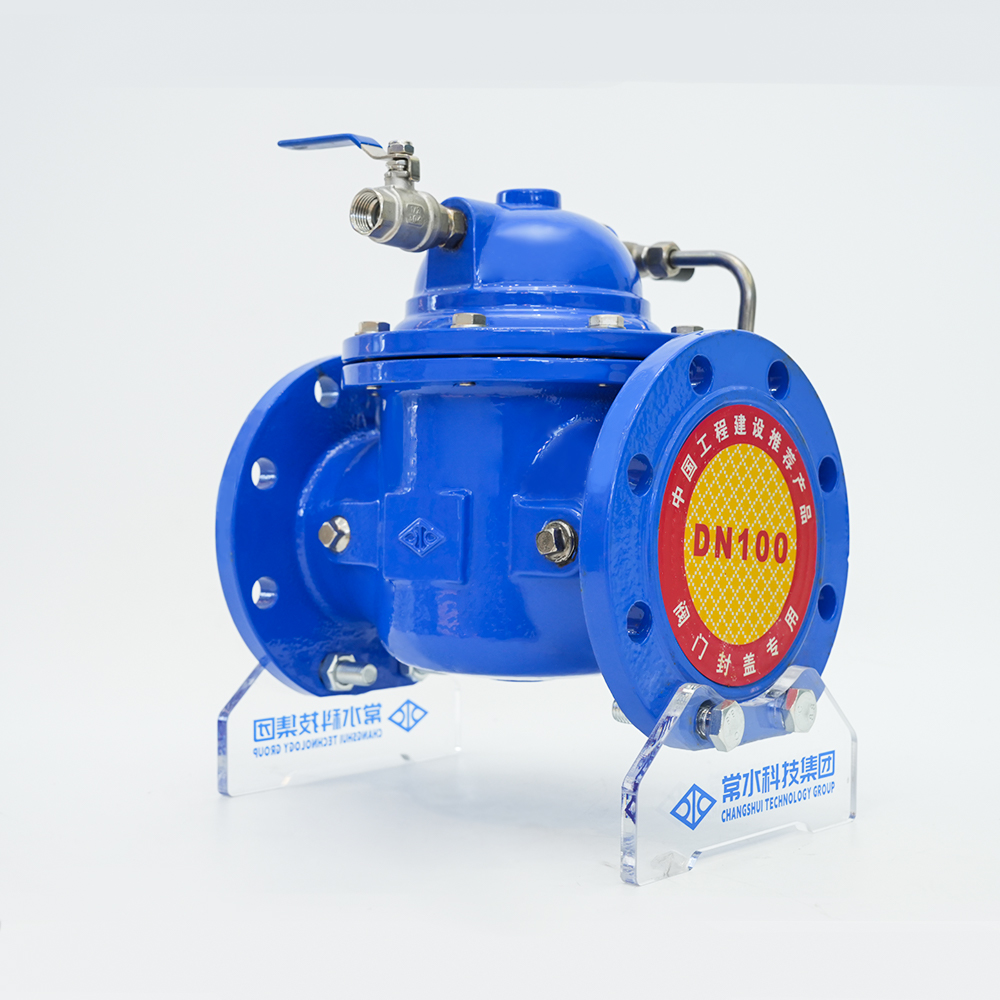 油圧制御弁は水圧によって制御される弁です。主弁とそれに付属する導管、パイロット弁、ニードル弁、ボール弁、圧力計で構成されています。目的・機能・使用場所に応じて、リモコン式フロート弁、減圧弁、緩閉逆止弁、流量調整弁、圧力リリーフ弁、油圧電動制御弁などに発展します。油圧制御弁はダイヤフラム式とピストン式に分けられます。それらの動作原理は同じです。上流と下流の圧力差 SP によって動力が供給され、パイロット弁によって制御されるため、ダイヤフラム (ピストン) は油圧差動で動作し、油圧によって完全に自動調整されます。主弁体は全開、全閉、または規制状態にあります。ダイヤフラム(ピストン)の上の制御室に流入した圧力水が大気または下流の低圧領域に排出されるとき、弁体の底部およびダイヤフラムの下に作用する圧力値が上の圧力値よりも大きいため、主弁体は全開位置まで押されます。ダイヤフラム(ピストン)上の制御室に流入した圧力水が大気または下流の低圧領域に排出できない場合、ダイヤフラム(ピストン)のピストンに作用する力)。上の圧力値は下の圧力値よりも大きいため、主弁体は完全に閉じた位置まで押し付けられます。ダイヤフラム(ピストン)上の制御室内の圧力値が入口圧力と出口圧力の間にあるとき、主弁体は調整状態にあり、その調整位置は管路系のニードル弁と調整パイロット弁の連動制御効果によって決まります。調整可能なパイロットバルブは、下流の出口圧力によってそれ自身の小さなバルブポートを開閉し、それに応じて変化させることができ、それによってダイヤフラム(ピストン)の上で制御される圧力を変化させ、メインバルブディスクの調整位置を制御します。
