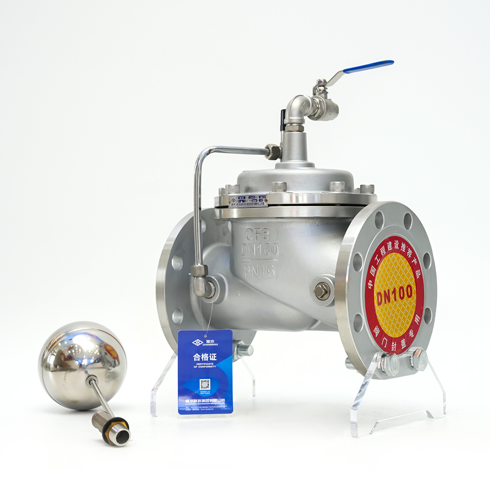 リモコンフロートバルブはメインバルブと外部ガイドバルブで構成されています。水中の浮き玉を利用し、液面の変化により案内弁を連動させ、主弁が給水して閉じることで、プール(タンク)や給水塔の水位を一定範囲内に制御し、溢水や低水位を防ぎます。このバルブは、工業、鉱業、民間建物の各種プール(タンク)や給水塔の自動給水システムに適しており、大気ボイラー循環水供給システムにも使用されています。主弁はウォーターハンマーを起こさず素早く開き、ゆっくり閉まります。しっかりと密閉されているので浸水の心配はありません。